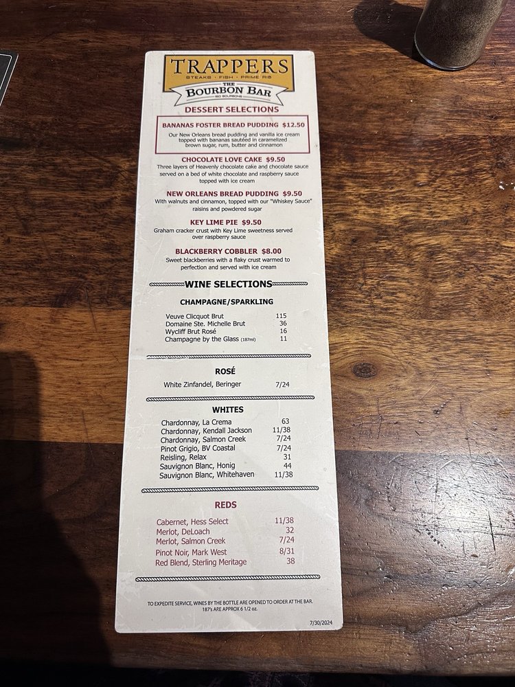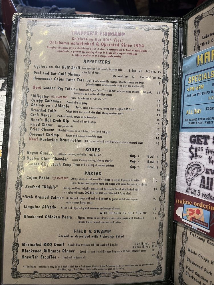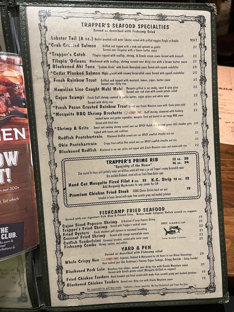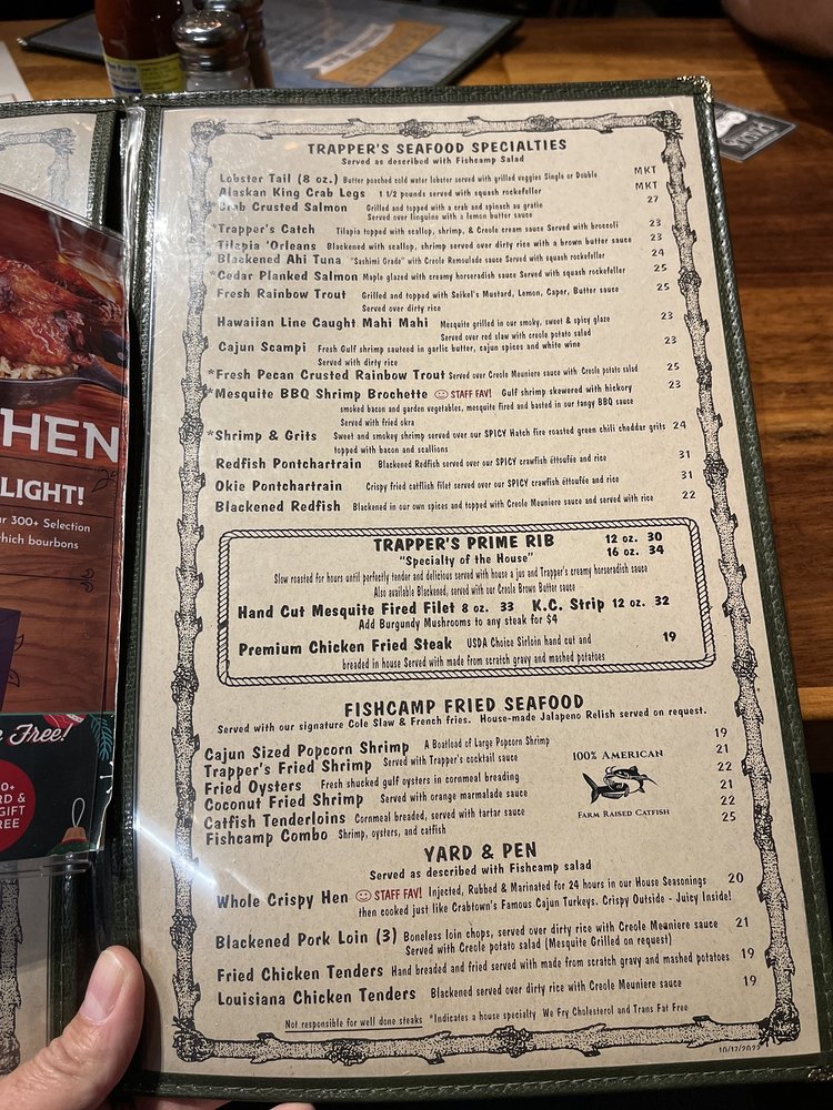 Trapper's Fish Camp Menu
